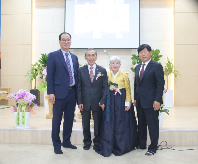 지난 13년동안 교회를 위해 몸과 마음을 다바친 김병우 목사는 퇴임시에서 “가장 부족한 종을 여기까지 인도해주신 하나님께 감사를 드린다.또한 본 교회 장로들을 비롯한 모든 성도들의 사랑과 기도가 있었기에 오늘 이 자리가 있게됨을 감사드린다.모든분들의 사랑에 힘입어 남은 생애도 하나님께 영광 돌리는 삶을 살아가겠다.”고 했다.