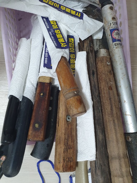 이날 예천백합교회(김경환 목사.우계리 소재) 칼갈이 봉사단(단장 김경환)이 무료로 칼을 갈아준다는 마을 이장인 권재완 이장의 방송을 통해 에 마을 주민들이 칼과 가위, 낫 꾸러미를 갖고 찾아온 것이다.
