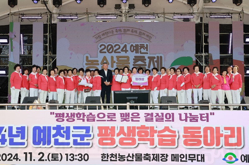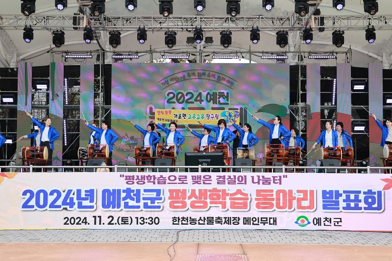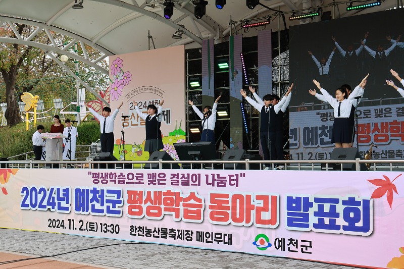 예천군(군수 김학동)은 2일 2024 예천농산물축제가 열린 한천체육공원 메인무대에서 전 군민과 함께하는 ‘평생학습 한마당 잔치’를 성황리 개최했다.