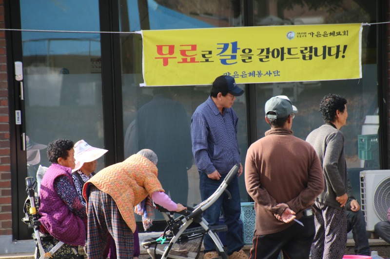 교회에서 실시하는 ‘무료 칼갈이’ 봉사는 은혜교회가 지난 8년전부터 매월 2회씩 한번도 쉬지 않고 가은 전역을 대상으로 실시하고 있는, 지역 어르신들에게 칼,가위,낫등을 무료로 갈아주는 봉사와 함께 하나님의 복음을 전하고 구원하는 순수 ‘복음 봉사’로 이미 널리 알려져 있다.