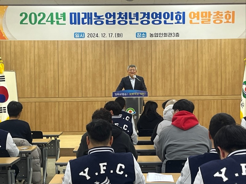 예천군 농업을 주도할 청년농업인들의 모임인 예천군 미래농업청년경영인회(회장 이복락)가 17일 오후 6시 예천군 농업인회관에서 ‘2024년 연말총회’를 개최했다.