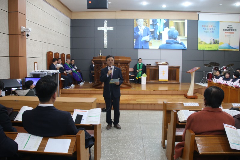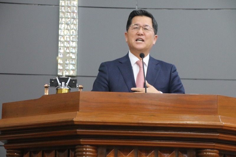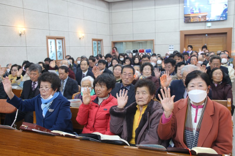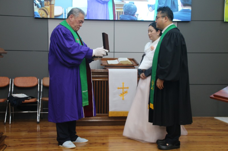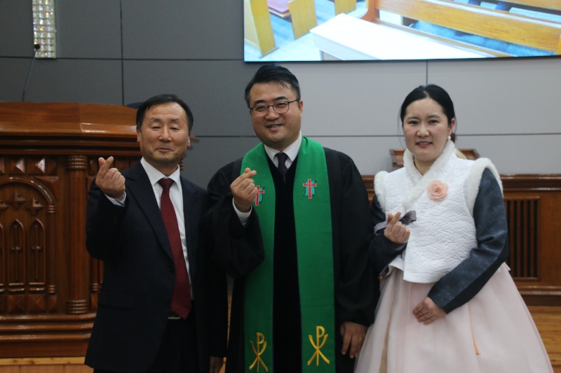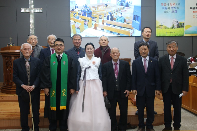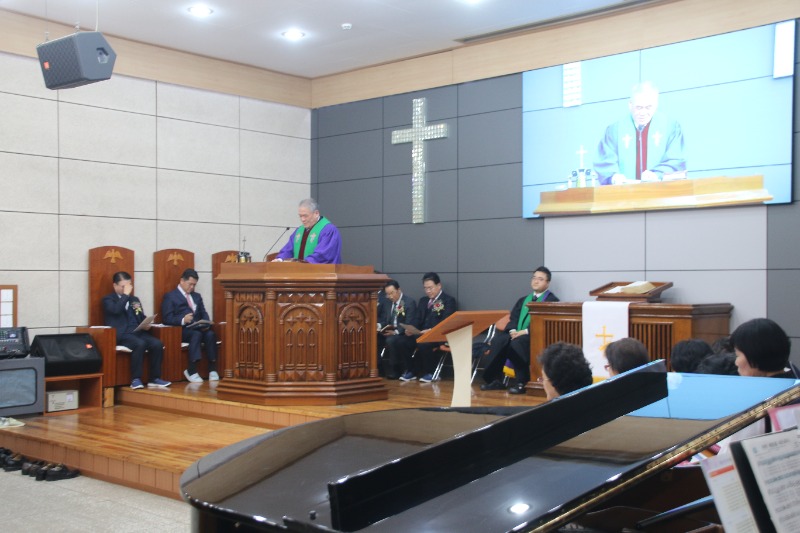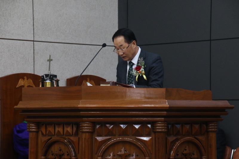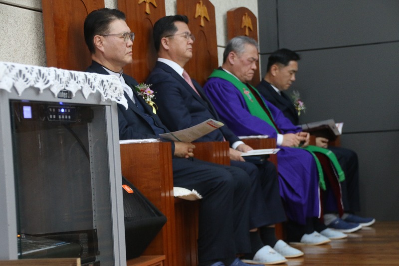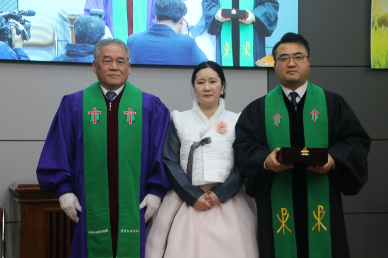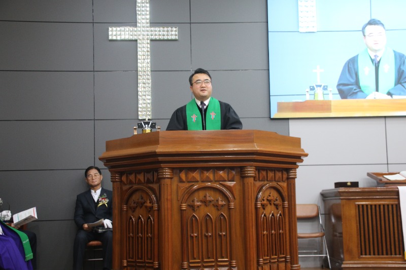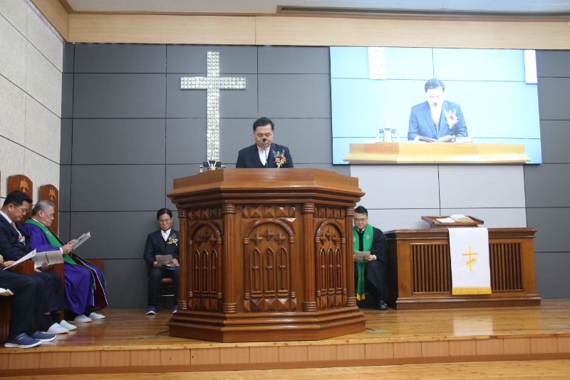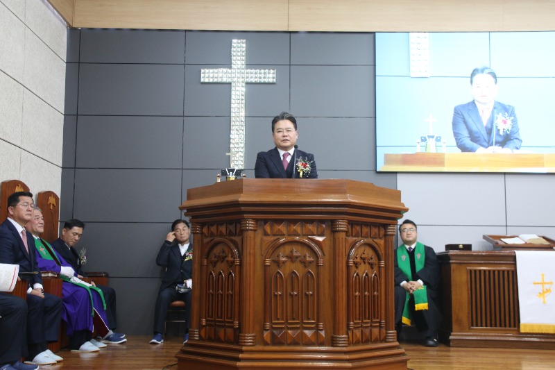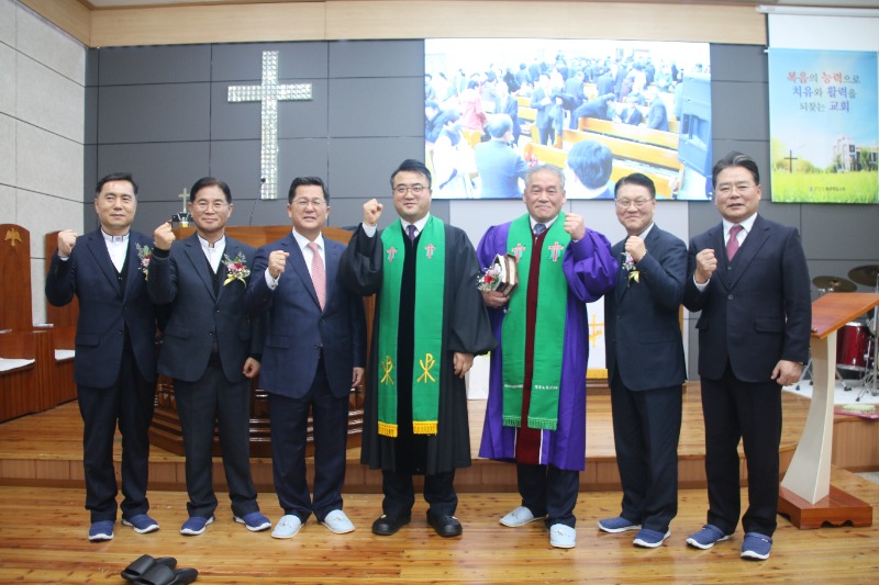 2부와 3부 위임식과 축하의 시간에는 목사소개, 서약, 위임기도, 선포에 이어 배효전 원로목사(창원중앙교회)의 권면과 위임패와 기념패 및 선물 증정,축사와 축가,인사말,축도(김윤기 목사)순으로 진행됐다.