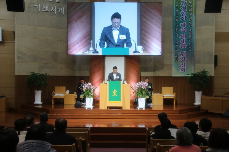 이날 집회는 연합회 수석부회장인 김운수 목사(예천제일교회 담임)의 인도로 예천교회 찬양단의 예배전 찬양,김장호 장로(부회장.예천교회)의 기도,부서기 김경환 목사(예천백합교회)의 성경봉독(왕하 4:1-7)과 예천교회 인헤세드 플롯 앙상블의 특별찬양,강사 목사인 박요셉 목사(부천노회 좋은교회)의 ‘있다고 말하라’ 제목의 설교와 광고 및 축도(고문 김병우 목사) 로 마무리됐다.