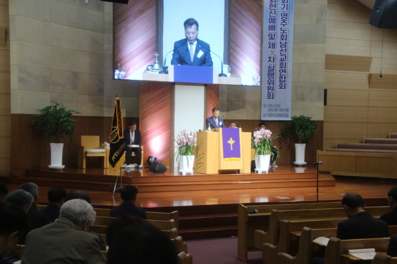 [채석일 기자]대한예수교장로회(통합) 제42회기 영주노회 남선교회연합회(회장.조현범 장로.상락교회)가 주최한 순회헌신예배 및 제1차 실행위원회가 9일 예천교회(담임목사 김영수)에서 열렸다.