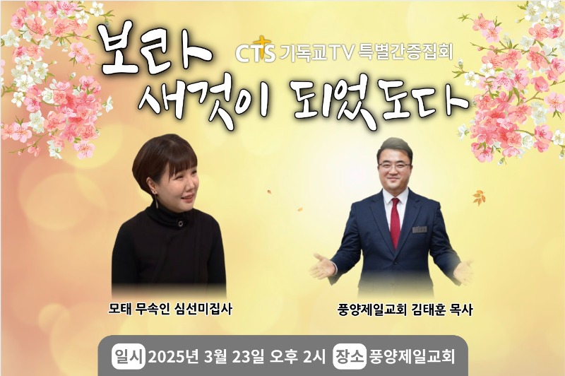 이번 집회는 지난1월 12일 김목사를 위임한 풍양제일교회가 새 봄을 맞아 교회 성도들에게는 큰 은혜와 도전이 되고 지역 주민들에게 복음이 전달되는 귀한 시간을 가지고자 CTS TV와 함께 마련했다.