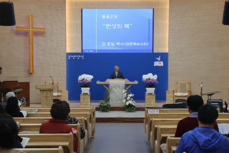 1부 예배는 경배찬양에 이어 문은석 목사(충현교회)의 사회로 성치곤 장로(충현교회)의 감사의 기도와 성경봉독(출 1:1-7), 김홍일 목사(점촌북부교회)의 ‘번성의 복’이라는 제목의 설교 순으로 진행됐다.