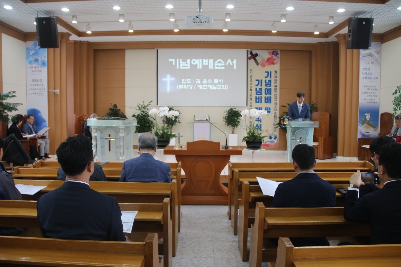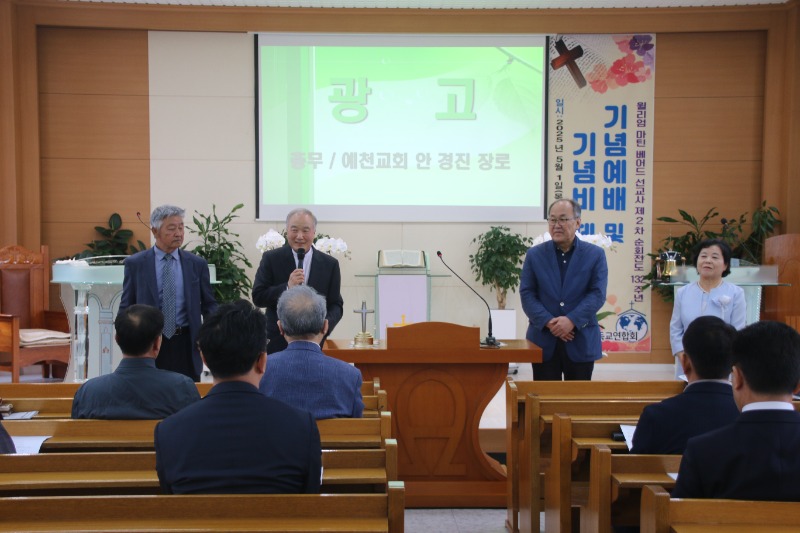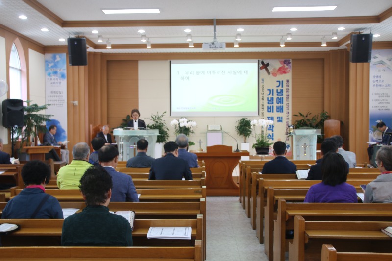 1부 기념예배는 연합회 수석부회장인 김운수 목사(예천제일교회)의 인도로 부회장 김장호 장로(예천교회)의 기도,서기 권용숙 목사(보성교회)의 성경봉독(눅1:1-4)에이어 연합회장 김한식 목사의 ‘성도의 역사관’이란 제목의 설교와 배위량 순례단연합회장 호명기 목사의 축도로 마쳤다.