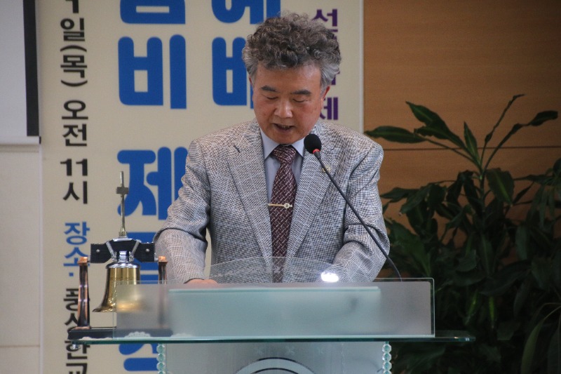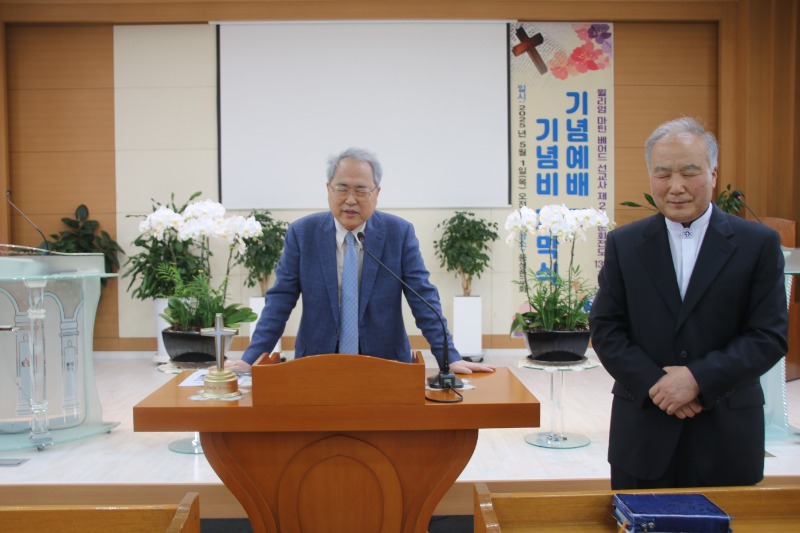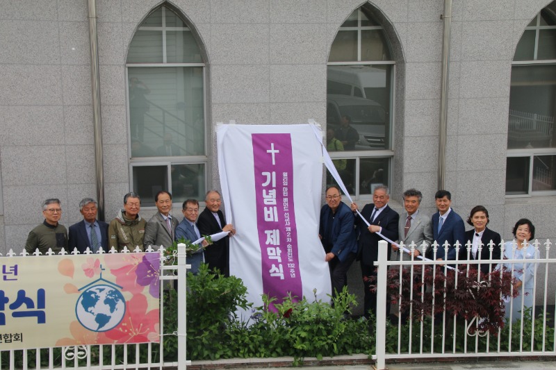 2부 기념비 제막식은 연합회 총무 안경진 장로(예천교회)의 사회로 김한식 목사의 인사 및 경과보고와 연합회 고문인 영주노회장 김윤기 목사(어신교회)의 축사 및 기념비를 제막했다.