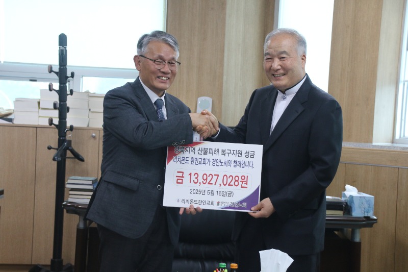 미국에 있는 리치몬드한인장로교회(담임목사 최찬영) 성도들이 고국의 재난 소식에 힘을 보탰다. 리치몬드한인장로교회는 1만 달러(한화1,393만원) 성금을 전달하며 “멀리 떨어져 있어도 마음은 항상 고국과 함께”라고 전했다.