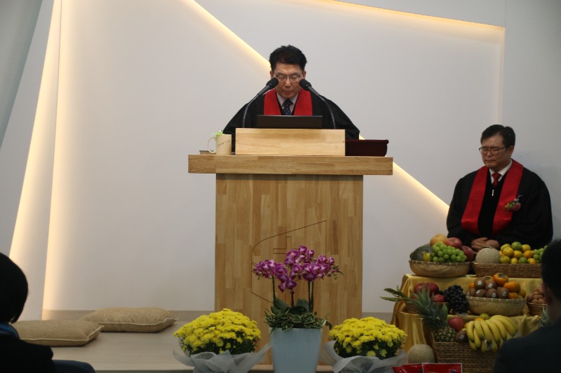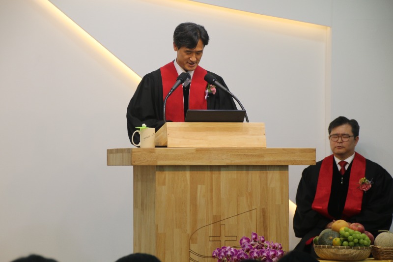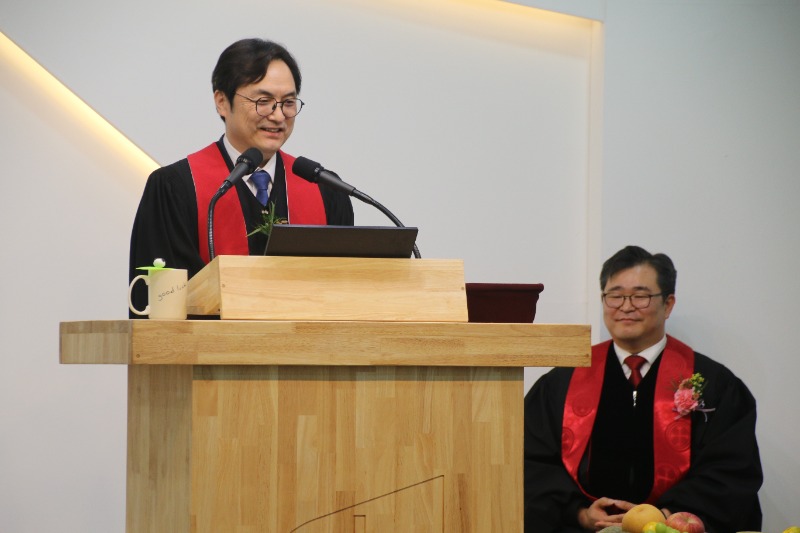 현용완 목사는 “오늘 주신 말씀에 충성된 사자는 그를 보낸이에게 마치 추수하는 날에 얼음냉수 같아서 능히 그 주인의 마음을 시원하게 하느니라 라고 했습니다.충성한다는 것은 뭔가 주인으로부터 맡겨진 일이 있는 사람이 ‘섬기는 사람에 대한 신뢰와 헌신’ 그것이 바로 충성입니다.오늘 임직 받는 다섯분은 그 마음에 언제나 충성을 깊이 새기며 하나님앞에 헌신.봉사하는 믿음의 일꾼이 되기를 바랍니다.”라고 했다.
