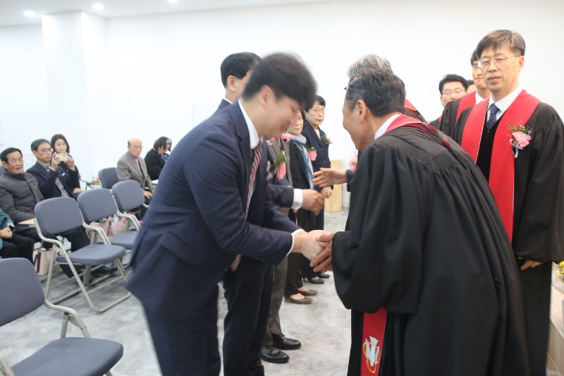 이어 서울강서노회시찰장인 이승남 목사(백석교회)의 권면, 백석대학교 실천신학대학원장인 황빈 목사의 축사,임직를 대표해 문진호 안수집사의 답사에이어 광고 및 서울강서노회 부회장인 박철효 목사의 축도로 마쳤다.