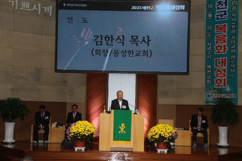 [채석일 기자]예천군기독교연합회(회장 김한식 목사.풍성한교회)가 주최한 2025‘예천군 복음화 대성회가 관내 기독교 신자 100여명이 참석한 가운데 10일 저녁7시 예천교회에서 거행됐다.