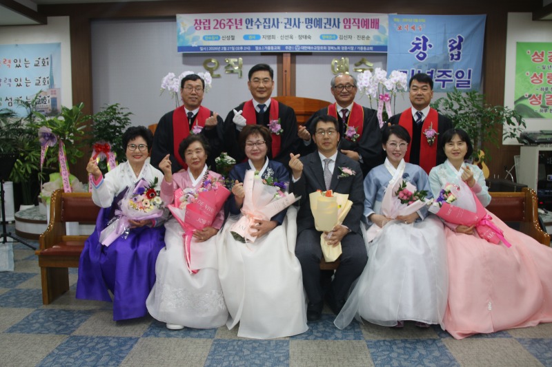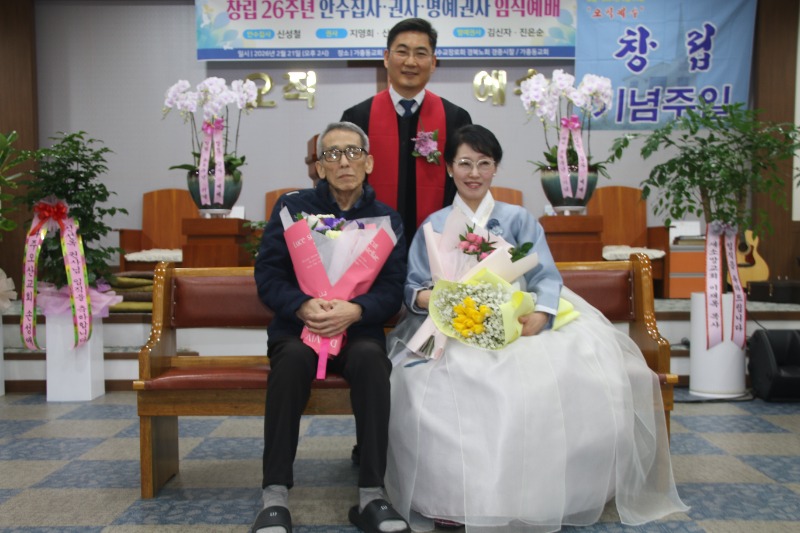 가흥동교회,창립26주년 기념, 믿음의 기둥 세우다…안수집사,권사,명예권사 임직식 거행