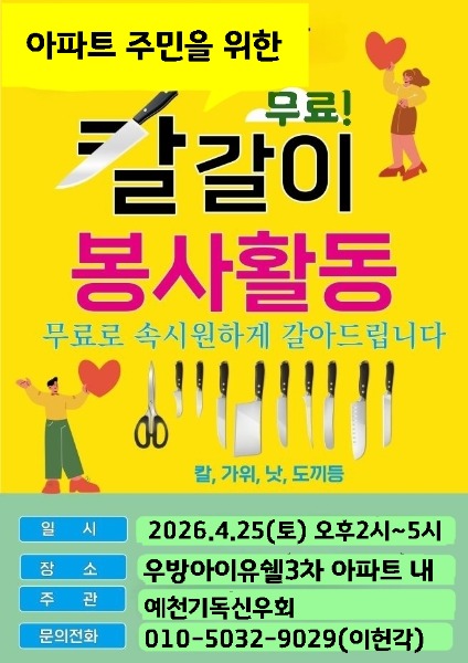 또한 2026년 ‘예천군 복음화와 회원100프로 증가’의 신 슬로건으로 ‘이웃에 다가가는 기독신우회 생활 전도’의 일환으로 오는 25일 신도청 아파트단지에서 ‘무료칼갈이 봉사와 영혼구원의 10원빵 전도활동’을 하기로 전 회원이 결의했다.