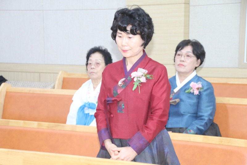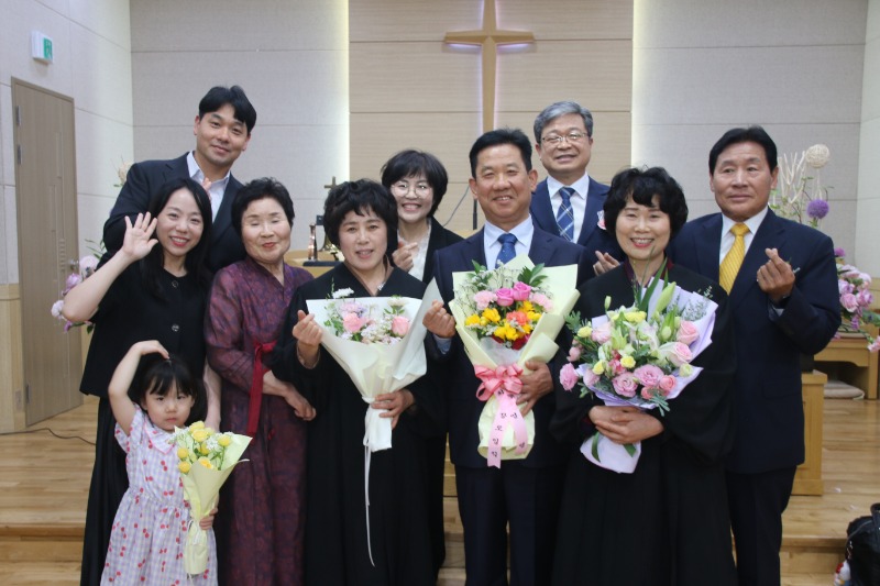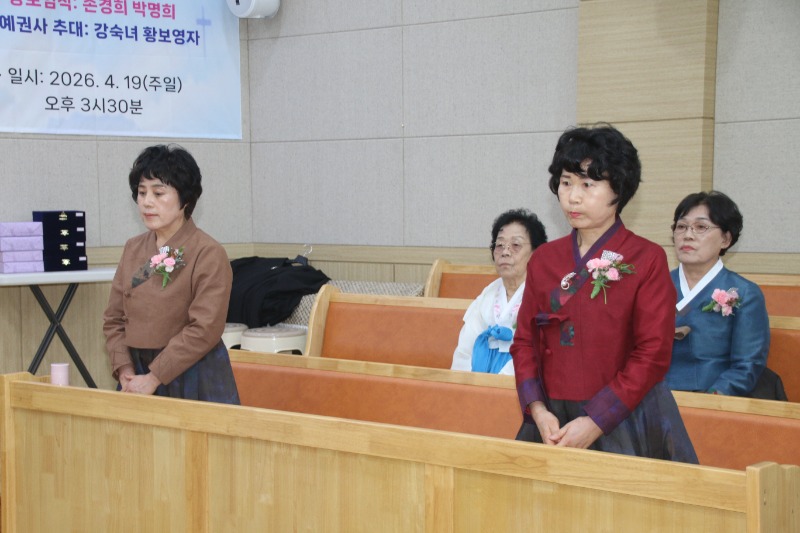 장로 임직에는 손경희 장로와 박명희 장로가, 명예권사 추대에는 강숙녀 집사와 황보영자 집사가 명예권사로 추대됐다.임직자 모두는 "주님의 몸 된 교회를 성심껏 받들어 섬기고 신앙생활과 일상생활에서 성도의 모범이 되어 주님의 영광을 드러내도록 노력하겠다"고 서약했다.