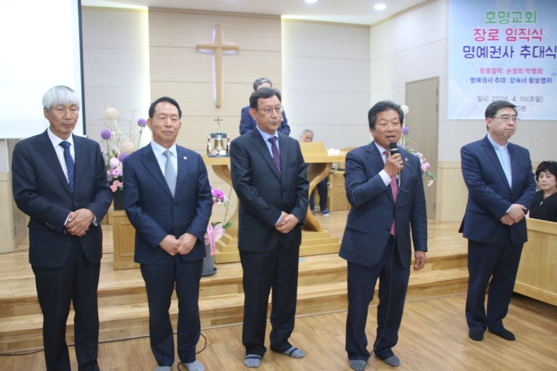 호명교회 도재근 목사는 임직식을 마친 후 “하나님께서 이곳에 호명교회를 세워주시고 오늘 새로운 하나님의 일꾼을 세우게 됨을 감사로 여기며 모든 영광을 하나님께 돌린다.임직하신 두분의 장로님과 추대를 받으신 권사님 두분에게 다시한번 축하드린다.”고 했다.