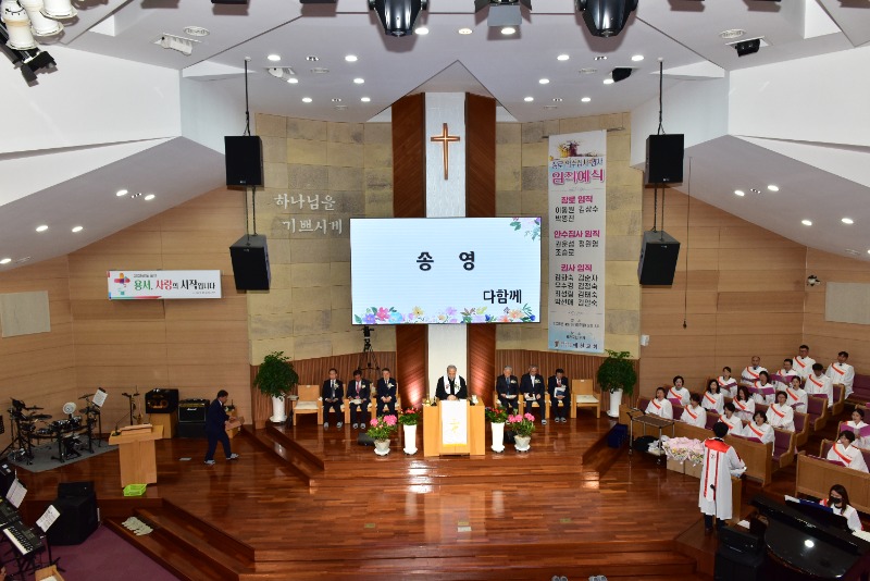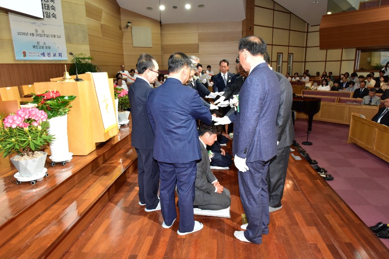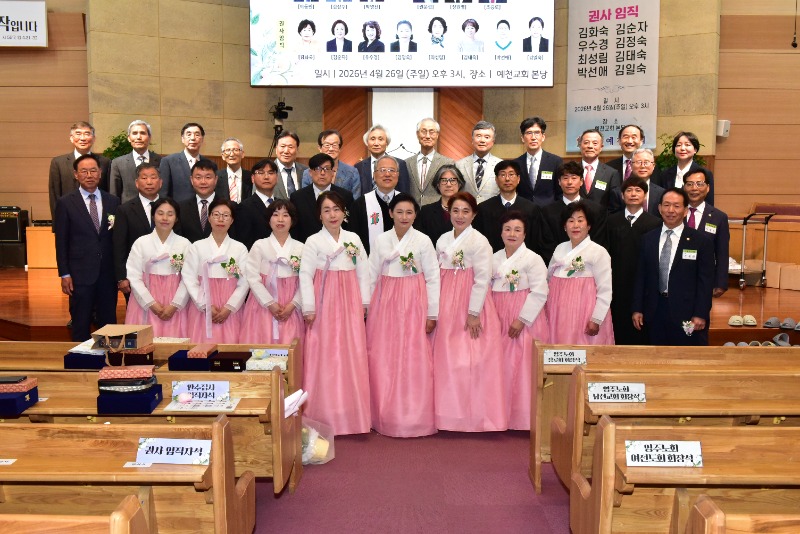 [채석일 기자]대한예수교장로회 예천교회(김영수 목사.)가 26일 오후3시 본당 대예배실에서 '장로취임 및 권사·안수집사 임직 감사예배'를 드리고 지역사회를 향한 새로운 헌신을 다짐했다.