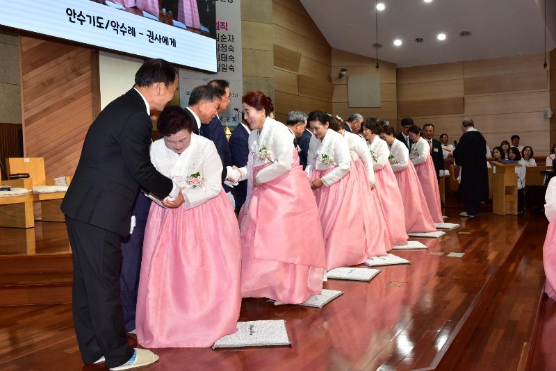 장로 임직에는 이동원,김상수,박영진장로가,안수집사에는 권운섭,정원영,조승로 집사가 권사임직에는 우수경 권사를 포함해 여덟명의 권사가 임직됐다.임직자 모두는 "주님의 몸 된 교회를 성심껏 받들어 섬기고 신앙생활과 일상생활에서 성도의 모범이 되어 주님의 영광을 드러내도록 노력하겠다"고 서약했다.