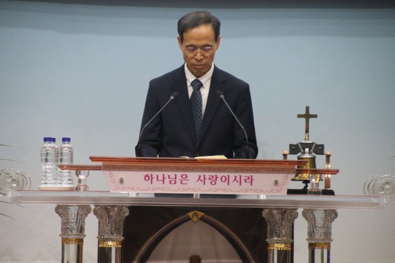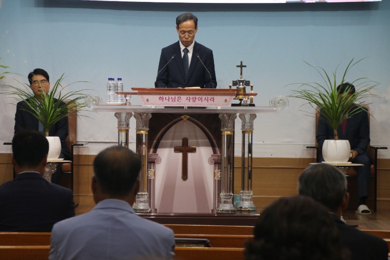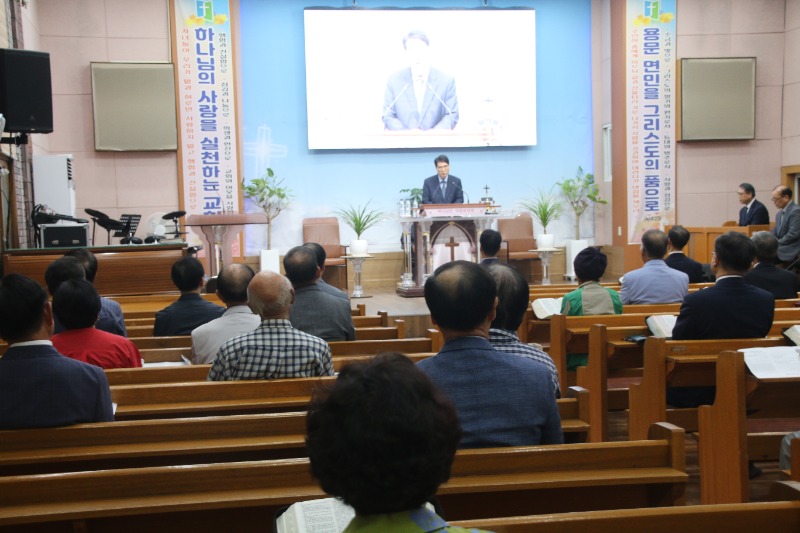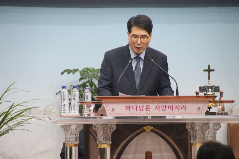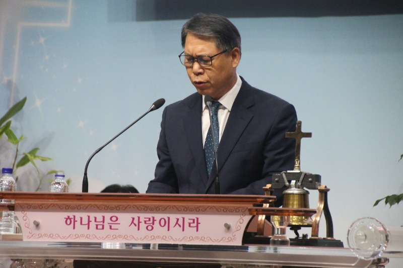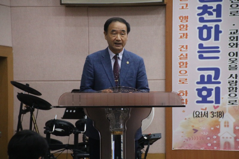 하나님 말씀을 들고 단위에 선 백재형 목사(예천군 기독교연합회 고문.예천감리교회)는 “사랑을 사모하라” 주제의 설교를 통해 “오늘날 이 세상에 점점더 사랑이 식어가고 있다.그 이유는 사랑의 가치를 모르기 때문이다.이제 우리는 하나님 안에서 사랑의 고귀한 가치와 중요성을 알고 사랑을 회복해야한다.우리 예천기독교연합회도 더 큰 사랑으로 예천의 모든 영혼들을 사랑으로 구원할 수 있기를 기대한다. "고 전했다.