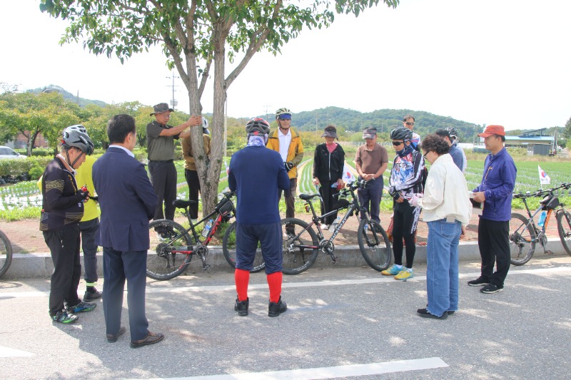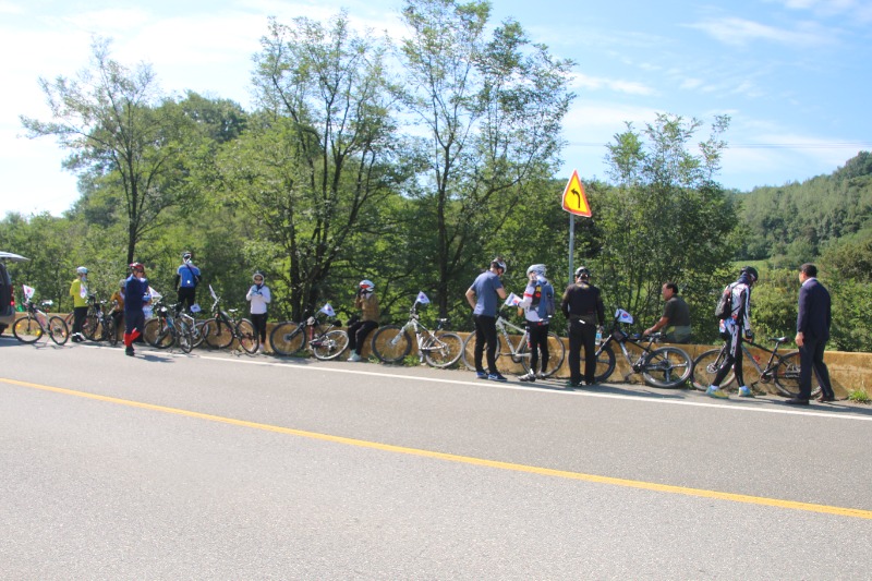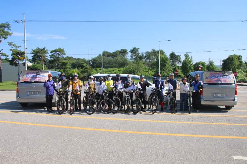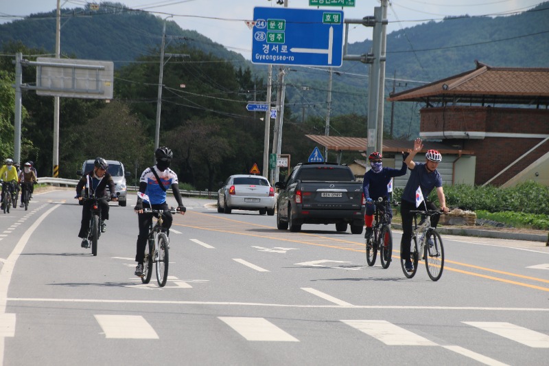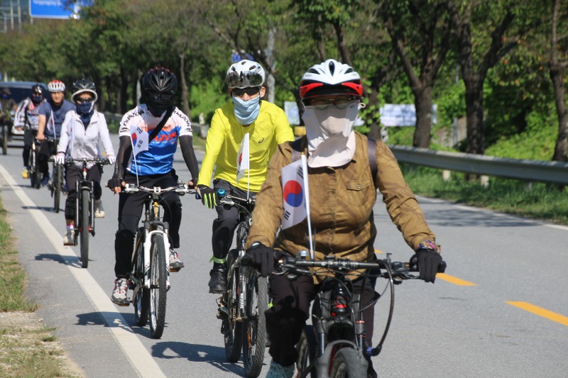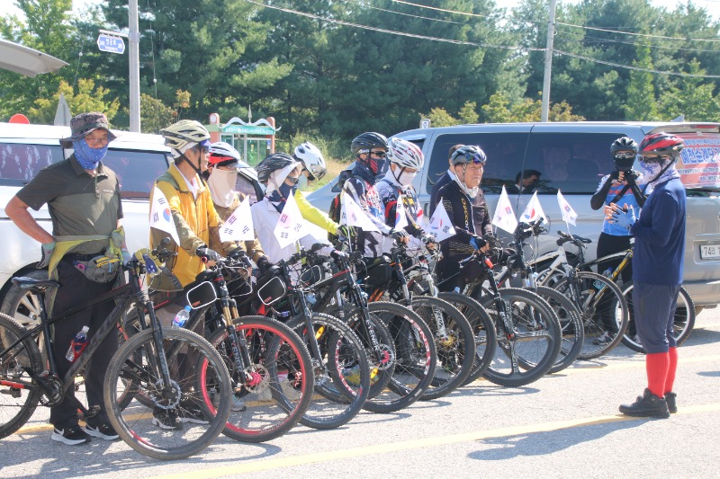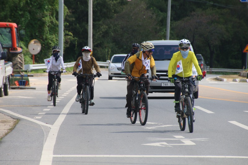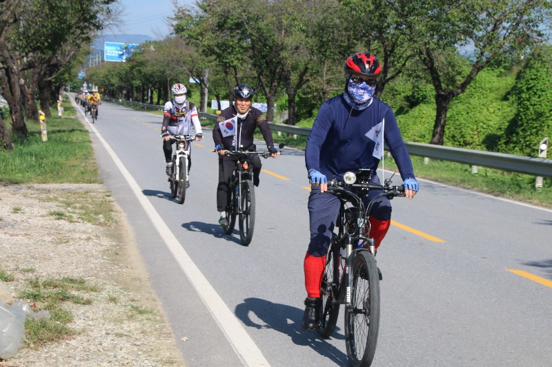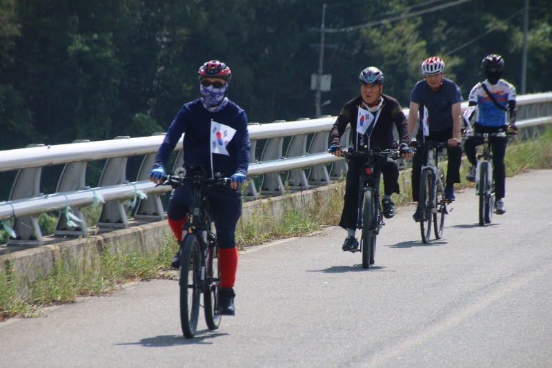 이날 라이딩은 오전10시 예천진호국제양궁장에 집결, 단장인 김한식 목사의 기도를 시작으로 진행됐으며 , 순례단 안전지휘 차량과 함께 20여대의 자전거가 태극기를 휘날리며 출발했다.