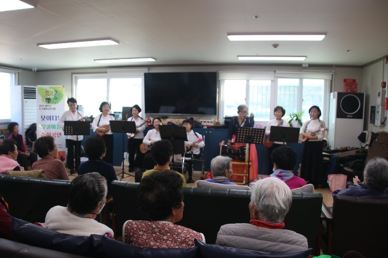 이날 공연은 2025년도 제4차 도시재생사업 우쿨렐레동아리의 열정적인 무대와 어르신들의 뜨거운 호응 덕분에 모두가 하나 되는 소중한 시간이됐다.