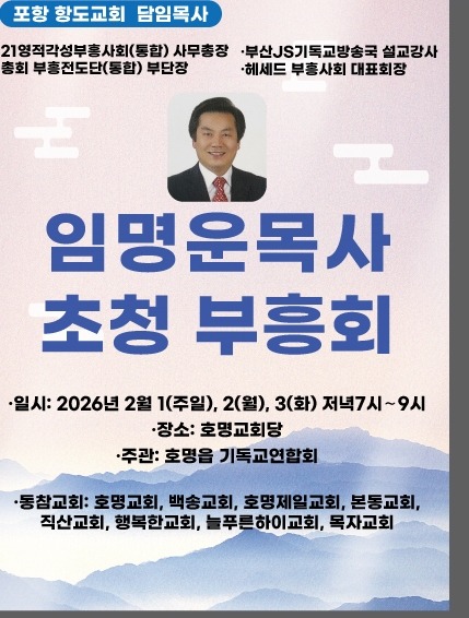 -퍼항 항도교회 임명운 목사 초청, 2월1일부터 사흘간-