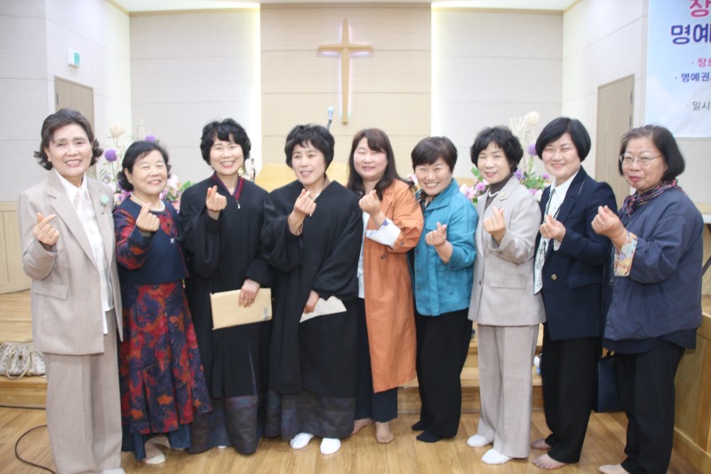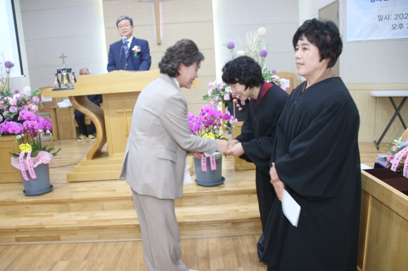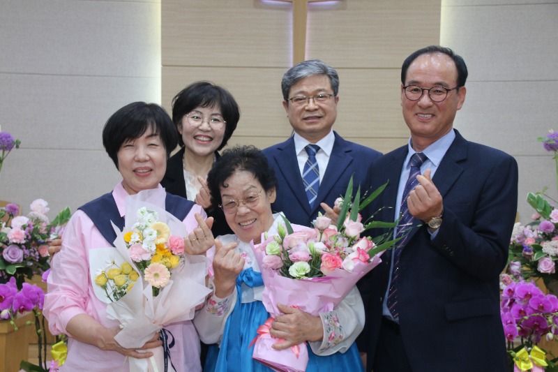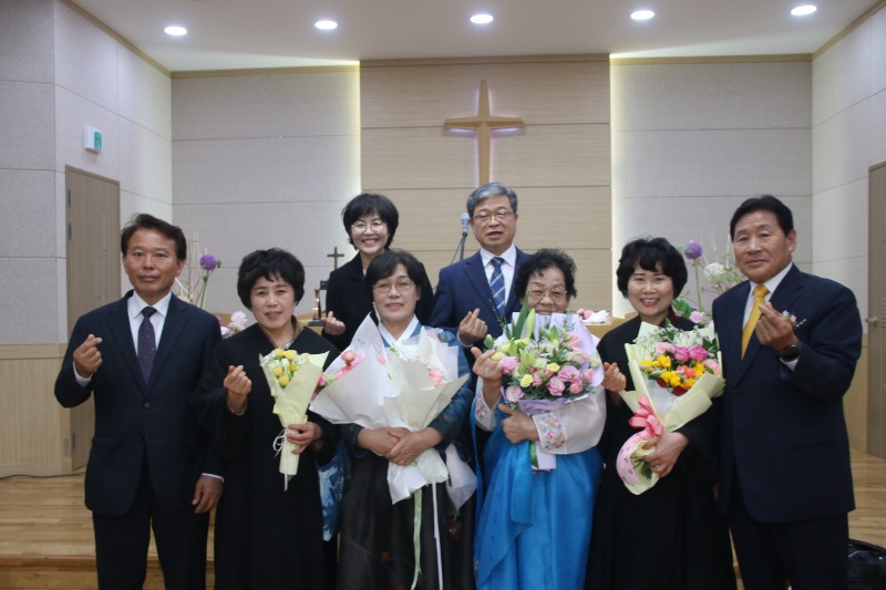 장로 임직에는 손경희 장로와 박명희 장로가, 명예권사 추대에는 강숙녀 집사와 황보영자 집사가 명예권사로 추대됐다.임직자 모두는 "주님의 몸 된 교회를 성심껏 받들어 섬기고 신앙생활과 일상생활에서 성도의 모범이 되어 주님의 영광을 드러내도록 노력하겠다"고 서약했다.