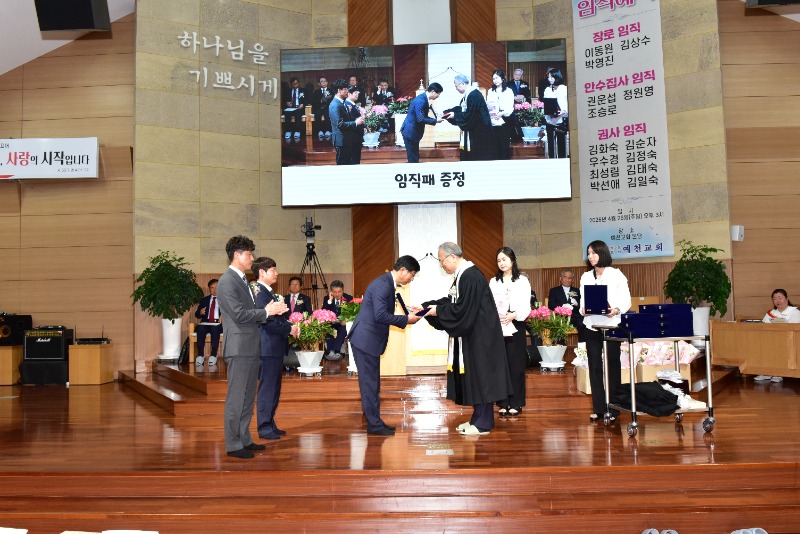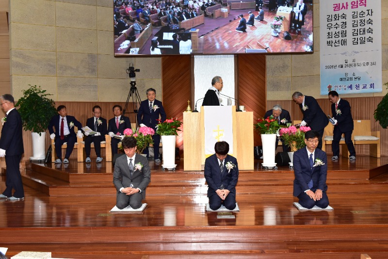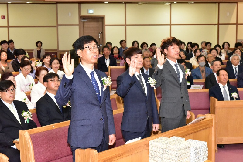 장로 임직에는 이동원,김상수,박영진장로가,안수집사에는 권운섭,정원영,조승로 집사가 권사임직에는 우수경 권사를 포함해 여덟명의 권사가 임직됐다.임직자 모두는 "주님의 몸 된 교회를 성심껏 받들어 섬기고 신앙생활과 일상생활에서 성도의 모범이 되어 주님의 영광을 드러내도록 노력하겠다"고 서약했다.
