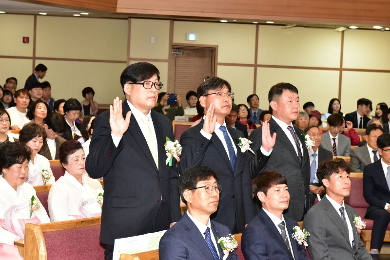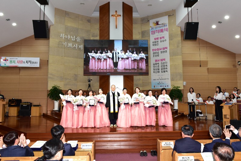 [채석일 기자]대한예수교장로회 예천교회(김영수 목사.)가 26일 오후3시 본당 대예배실에서 '장로취임 및 권사·안수집사 임직 감사예배'를 드리고 지역사회를 향한 새로운 헌신을 다짐했다.